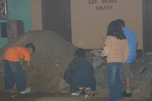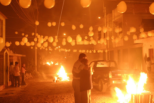 Right at midnight, the real excitement began. The radios synchronize the time with the military and count down to midnight. At midnight everyone hugs and wishes their family and neighbors a Feliz Ano Nuevo. They light dummies (I think they represent bad luck, but I'm not sure) that each family makes on fire, and set off fireworks.